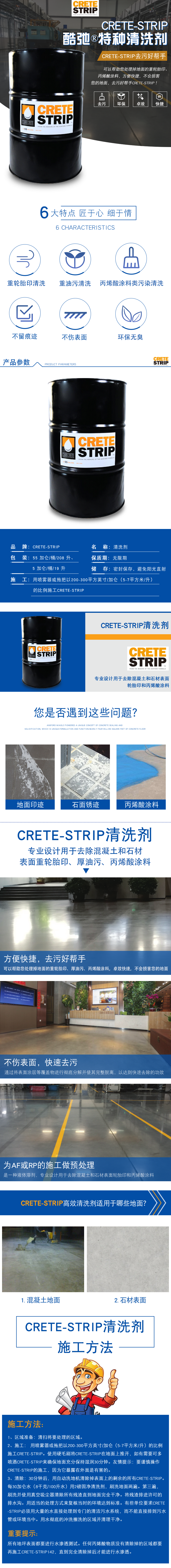 1、使用CreteStrip去除油漬時,按1:1的比例用水稀釋CreteStrip。