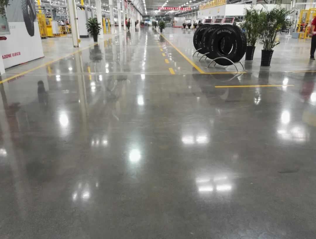 處理后地面干/濕摩擦系數分別為0.86和0.69,安全防滑,施工后無需打蠟或涂覆維護層,地面經使用會逐漸呈現打蠟般光澤。確保車輛行駛與人員行走安全,避免濕滑風險。提升整體環境美觀度,且光澤越用越亮。