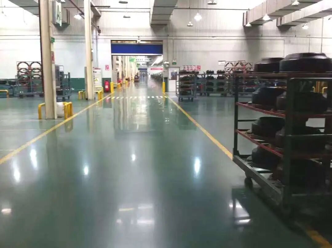 隨著現代生產的高端自動化發展,AGV使用越發頻繁。AGV車輪(尤其是重載AGV)長期在同一條路徑上高頻次、高壓強行駛,對地坪磨損巨大。普通地坪易被碾出輪印、起皮。