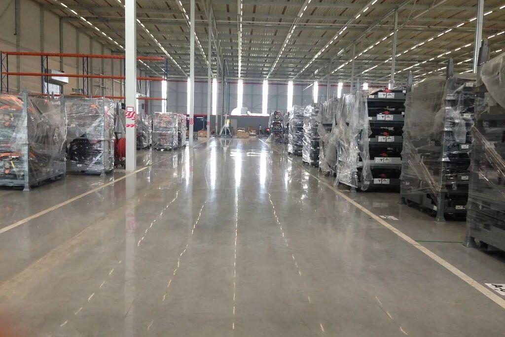 施工完的安斯福妙樂固化地坪,使混凝土莫氏硬度提升至6-7級,耐磨性對比提升32.5%,抗壓強度提升至少40%,完美抵御車輛長期重壓與頻繁摩擦,極大減少輪胎印痕。